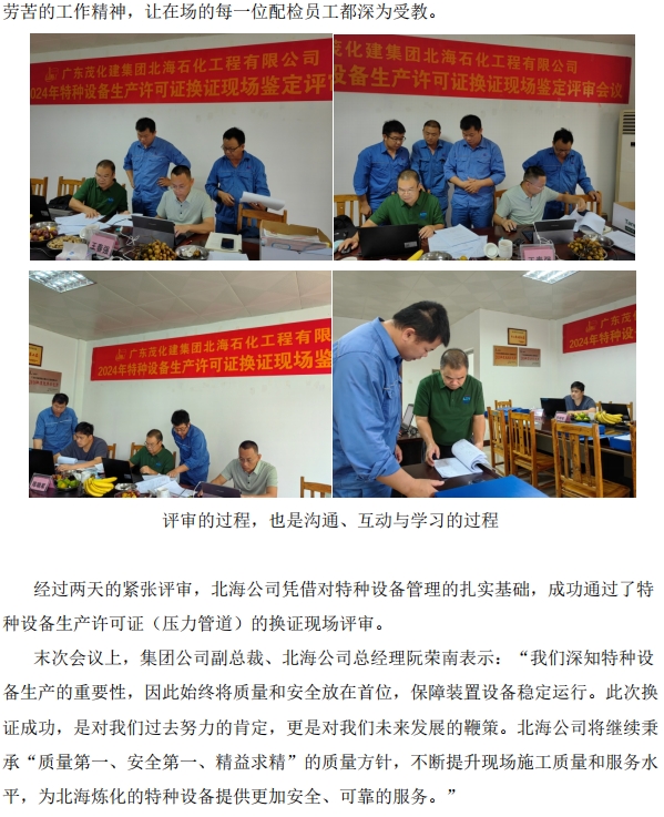 北海公司通過(guò)特種設(shè)備生產(chǎn)許可證(壓力管道)換證現(xiàn)場(chǎng)評(píng)審