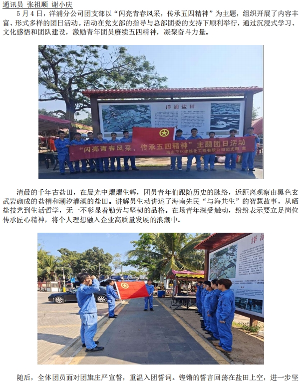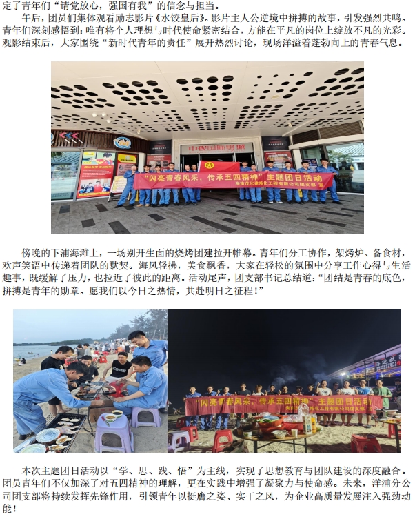 洋浦分公司團(tuán)支部開展“閃亮青春風(fēng)采,傳承五四精神”主題團(tuán)日活動