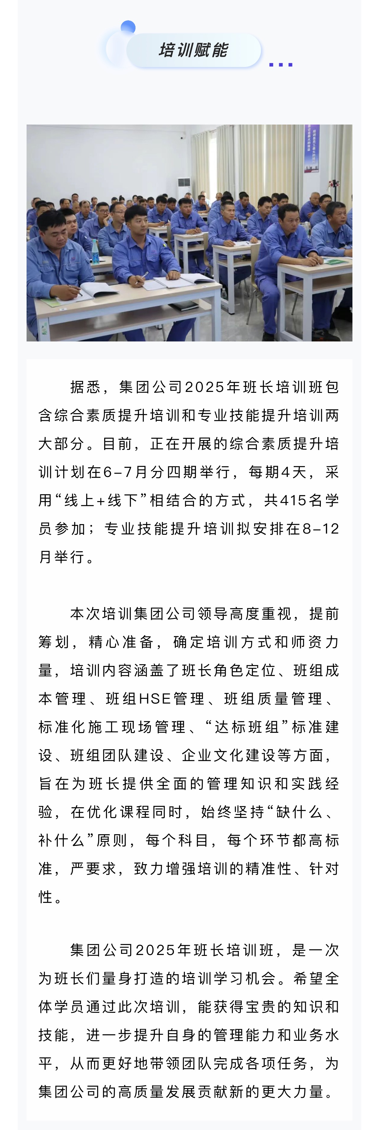 集團公司2025年第一期班長培訓(xùn)班順利開班