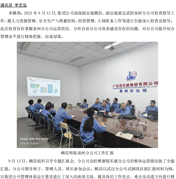 集團(tuán)公司領(lǐng)導(dǎo)到泉州分公司檢查指導(dǎo)工作